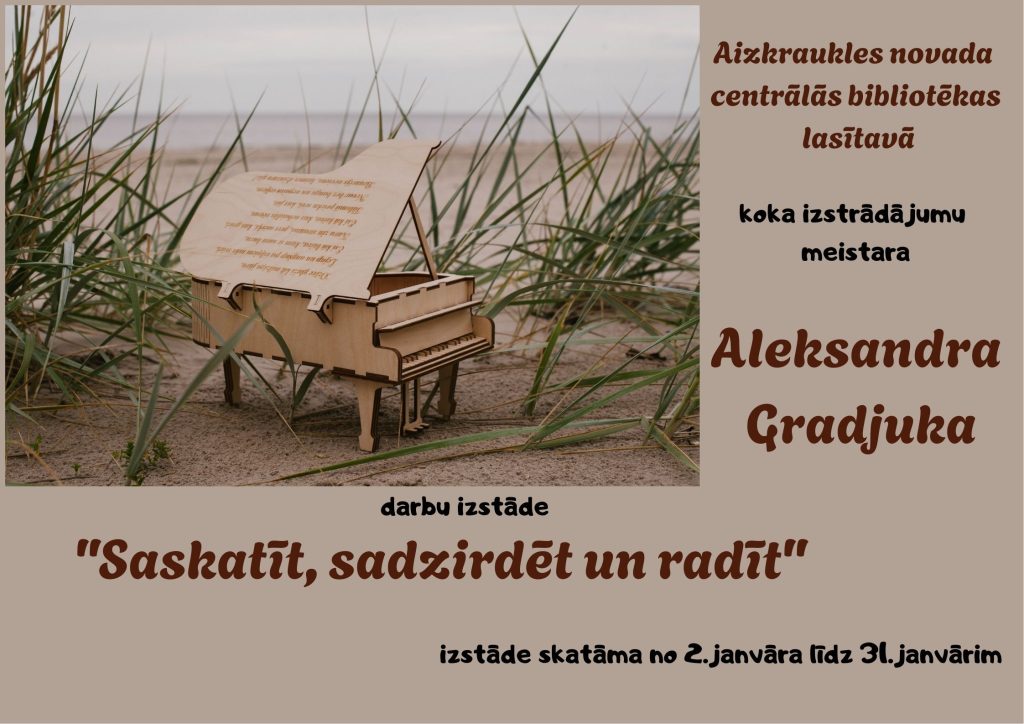 Bibliotēka aicina apmeklēt Aleksandra Gradjuka koka izstrādājumu darbu izstādi. Dabīgi materiāli, rūpīgs roku darbs un unikāli risinājumi – iedvesma ikvienam!
