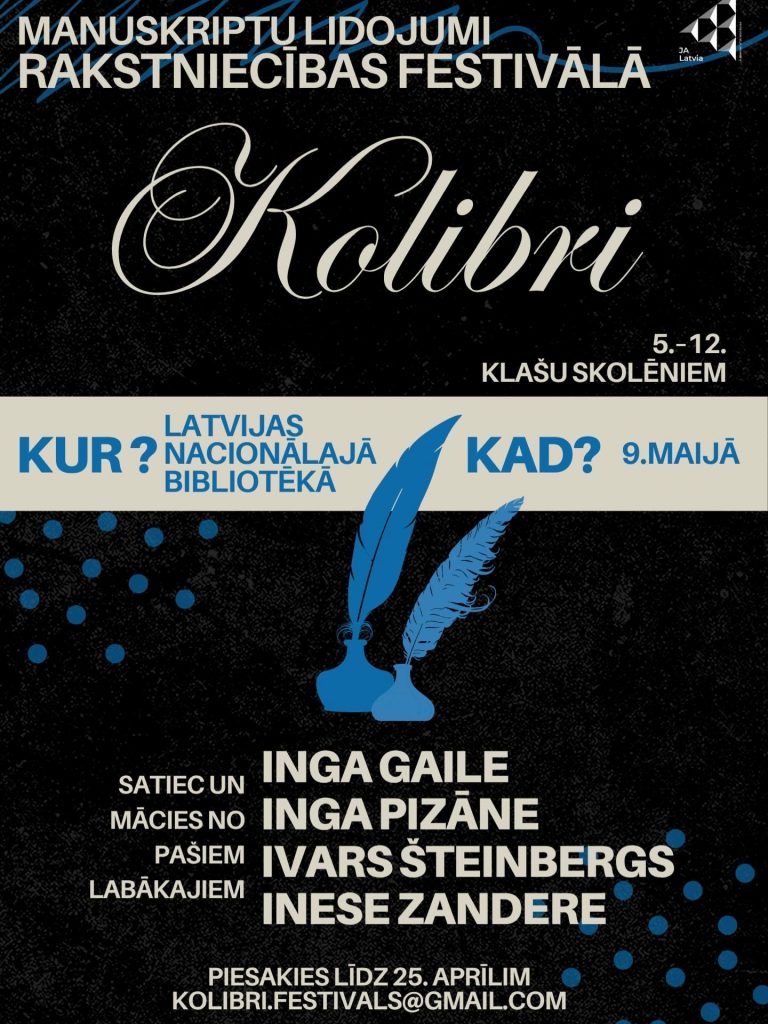 Jauniešu rakstniecības festivāls “Kolibri” aicina 5.–12. klašu skolēnus pieteikties jaunrades konkursā, iesniedzot paša radītu literāru darbu – dzejoli vai prozu.