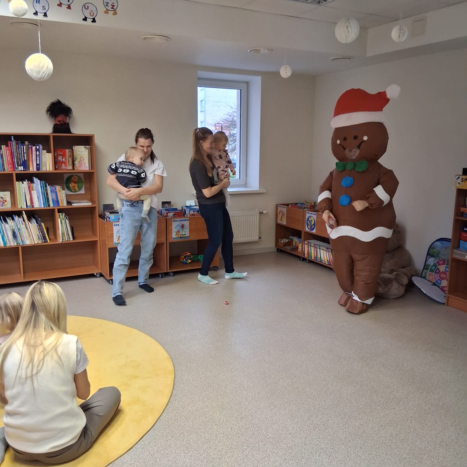 Šodien bibliotēkā viesojās mazie “ķipariņi” no AIIC (Aizkraukles interešu izglītības centrs), lai Ziemassvētku noskaņās parotaļātos, paklausītos dziesmiņas par piparkūkām un, vērojot ekrānu, justu līdzi Kraukšķītim, kurš nonāca viltīgās lapsas zobos… Bet pārsteigums visiem bija Piparkūku vīriņš, kurš bija ieradies, lai kopā uzdejotu un visus pacienātu ar piparkūkām.