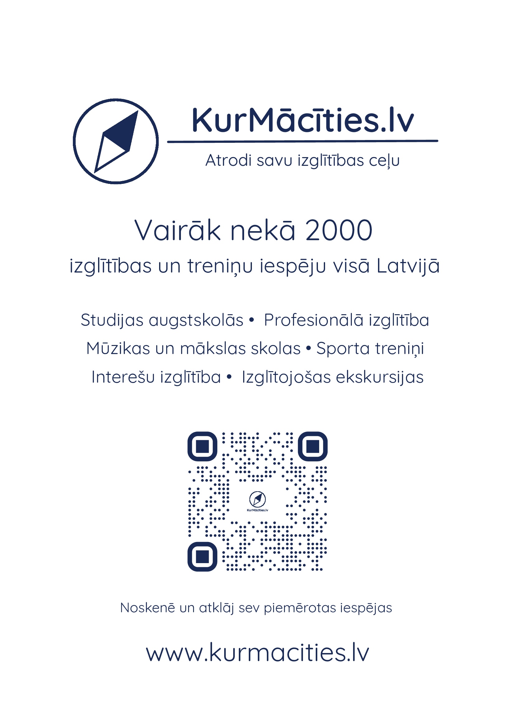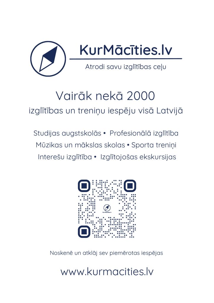 Informējam par sabiedrībai pieejamu tīmekļa resursu KurMācīties.lv, kurā vienuviet apkopotas dažādas izglītības un prasmju apguves iespējas Latvijā.